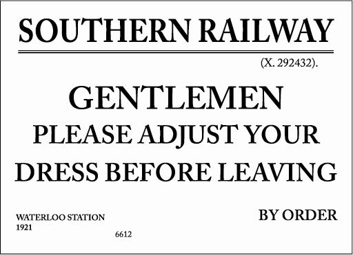 Southern Railway Gentlemen Please Adjust Your Dress sign