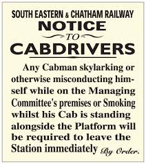 South Eastern and Chatham Railway Notice Notice To Cabdrivers sign