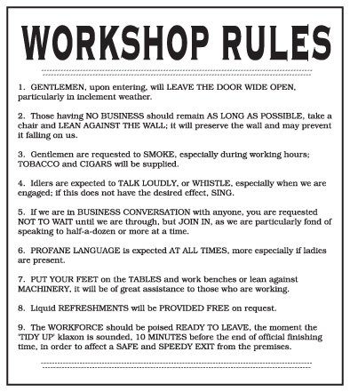 Workshop Rules sign